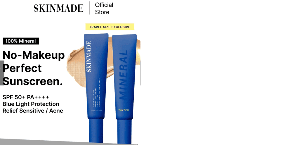 Mineral sunscreen dalam set ini menggunakan bahan seperti zinc oxide yang melindungi kulit daripada sinaran UV tanpa menyerap ke dalam kulit.