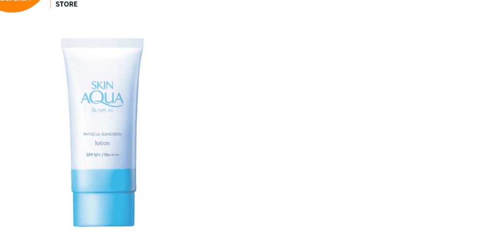 Sunplay Skin Aqua adalah 100% physical sunscreen dengan perlindungan SPF50+ PA++++.